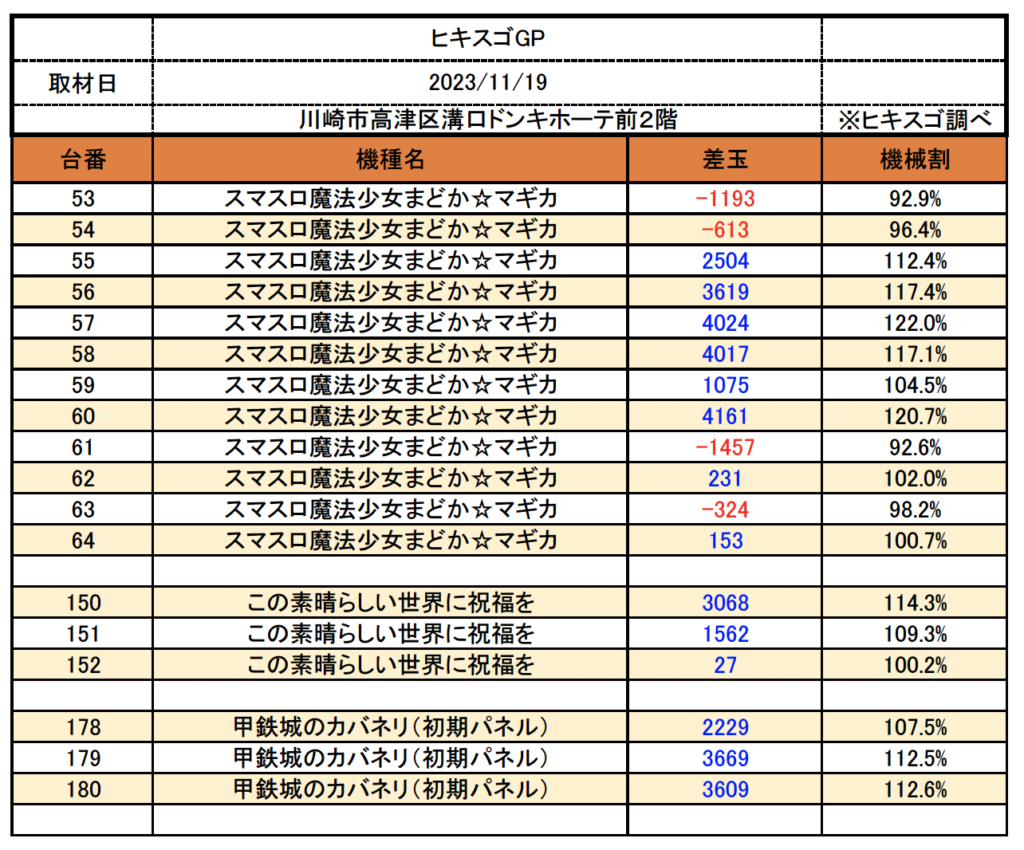 2023年11月23日 未分類 11/19(日)取材結果💪 TWEET 店舗 川崎市高津区溝口ドンキホーテ前2階 取材日 2023/11/19 地域 川崎市高津区溝口ドンキホーテ前2階 ・スマスロ魔法少女まどか☆マギカ ・この素晴らしい世界に祝福を ・甲鉄城のカバネリ(初期パネル) まどマギ最新作のスマスロがこの台数もしや全台!?流石に圧巻の光景🤩 このすばやカバネリなど人気の6.5号機もヒキスゴ!🔥 サミーやユニバはやっぱり安定してますね😄 注目箇所