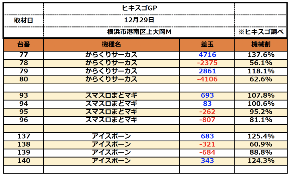 2024年1月3日 未分類 12/29(金)取材結果💪 TWEET 店舗 横浜市港南区上大岡M 取材日 2023/12/29 地域 横浜市港南区上大岡M ・からくりサーカス ・スマスロまどマギ ・モンハンアイスボーン からくりサーカスはメリハリのある結果に💪 まどマギとアイスボーンはあまり回されてないようだが つまりチャンスは眠っていた!? 次回開催は要チェック🔥🔥 注目箇所 ■からくりサーカス ■スマスロまどマギ ■モンハンアイスボーン