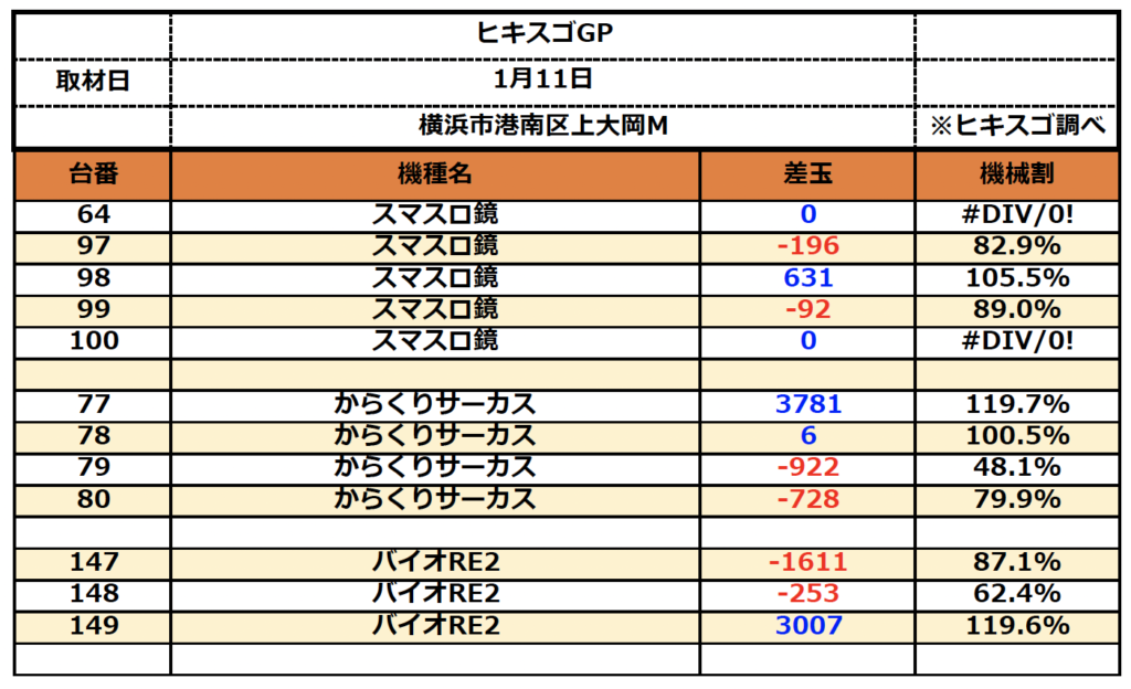 2024年1月12日 未分類 1/11(木)取材結果💪 TWEET 店舗 横浜市港南区上大岡M 取材日 2024/01/11 地域 横浜市港南区上大岡M ・サラリーマン鏡 ・からくり ・バイオRe:2 今回は回されてない台も見られたので チャンスは眠ってしまっていたのか!? 夕方からでも諦めずにヒキスゴ動画を撮りに行こう🔥🔥 注目箇所 ■サラリーマン鏡 ■からくりサーカス ■バイオRe:2