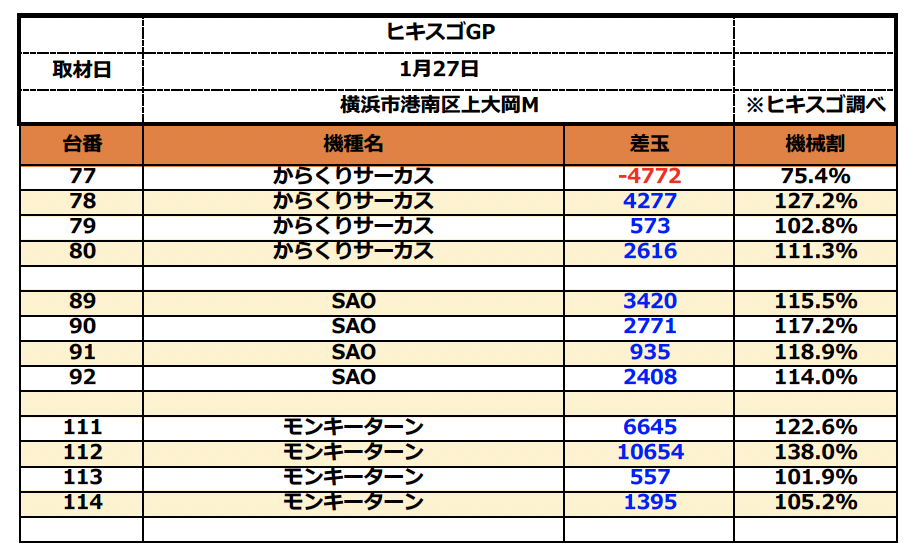 2024年1月30日 未分類 1/27(土)取材結果#横浜市港南区上大岡M💪 TWEET 店舗 横浜市港南区上大岡M 取材日 2024/01/27 地域 横浜市港南区上大岡M ・からくりサーカス ・SAO ・モンキーターンⅤ 今回は過去最高のヒキスゴ結果!? ほぼプラスに加え万枚オーバーも🤩🔥 スマスロの爆発力がここに! 注目箇所 ■からくりサーカス ■SAO ■モンキーターンⅤ