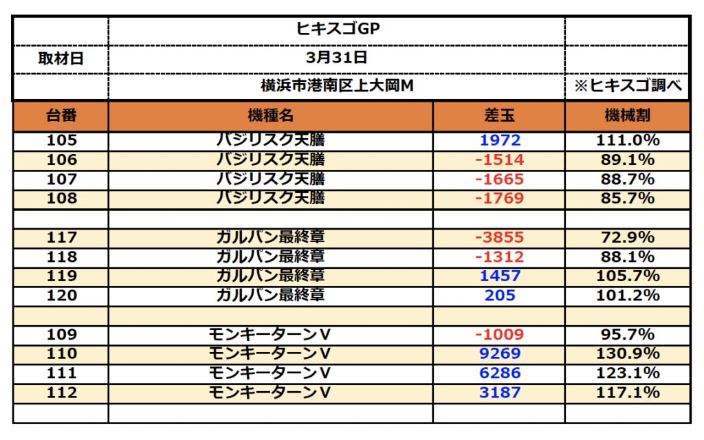 2024年4月4日 未分類 3/31(日)取材結果#横浜市港南区上大岡M💪 TWEET 店舗 横浜市港南区上大岡M 取材日 2024/03/21 地域 横浜市港南区上大岡M ・バジリスク天膳 ・ガルパン最終章 ・モンキーターンⅤ 天膳とガルパンはメリハリのある結果に! モンキーターンはヒキスゴ祭!!!! 注目箇所